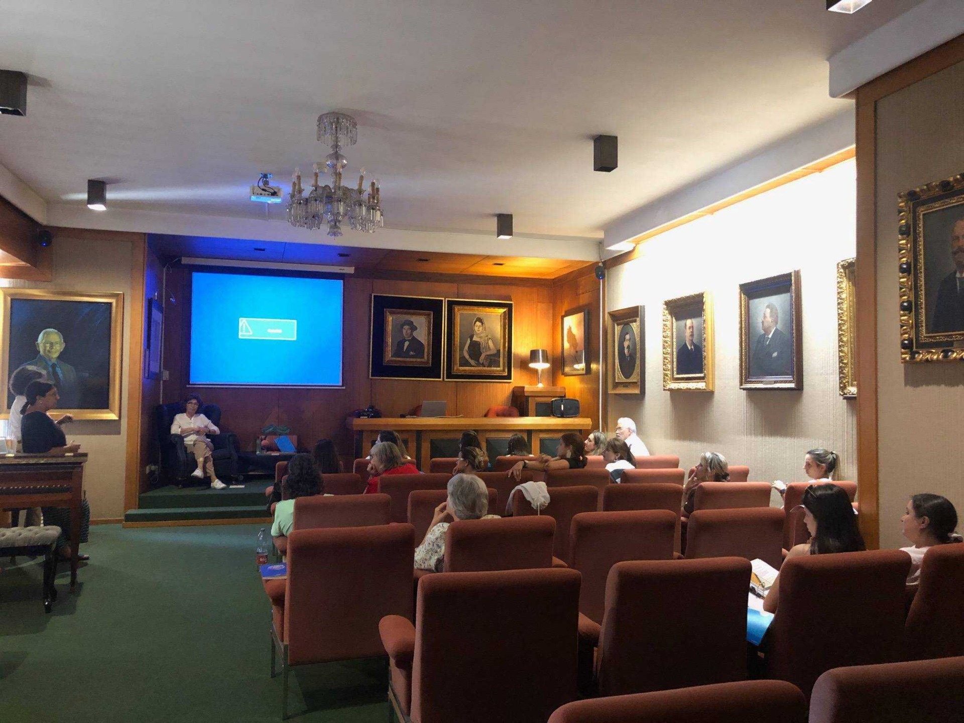 - Equipamento de projeção: tela portátil, projetor;
